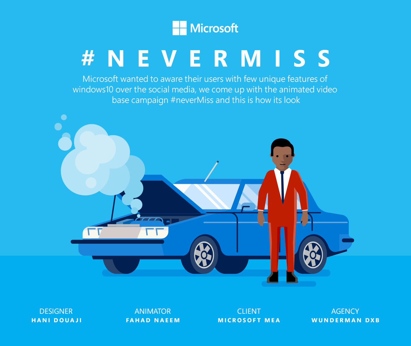Microsoft wanted to aware their users with few unique features of Windows 10 over the social media, we come up with the animated video based campaign #NeverMiss.